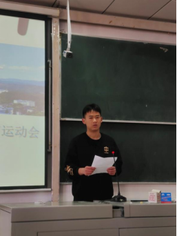 在9A210教室运动员及教练员动员会议上,体育学院副院长胡庆华为本次会议的主持人。