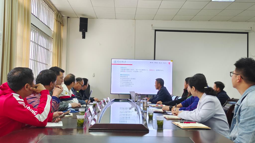 在体育学院会议室举行的座谈会上,倪东业对蒙军一行的到来表示热烈欢迎,副院长胡庆华介绍了我院的基本情况,党总支副书记万利介绍了我院体育专业硕士点申报的相关经验。