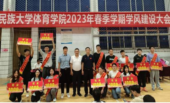 会议第四项,体育学院院长倪东业、体育学院副院长胡庆华、党总支副书记万利为2023年学校运动会破纪录的学生、2022年国家奖学金获得者、2023年学校红珊瑚奖学金获得者、2022年学校特等奖学金获得者、2023年我院考上研究生的学生颁奖。