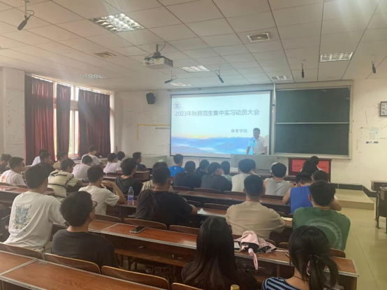 为落实实习就业部署,提升人才培养质量,我院分别召开了体育教育专业、社会体育指导与管理专业的集中实习动员大会,体育学院院长倪东业、党总支书记何斌、副院长胡庆华、社会体育指导与管理专业负责人王佳、体育教育专业负责人林万久、教学科科长肖杰文、办公室主任宋庆龙出席,我院今年参加集中实习学生参与本次大会。