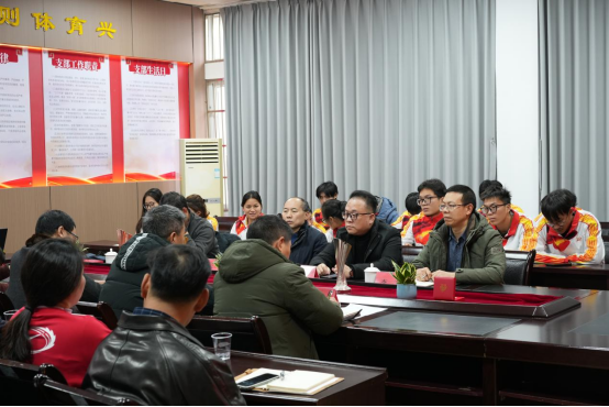 院长何斌总结bat365官网获批省民宗委少数民族传统体育项目训练基地的成绩,并对备战2026年湖北省少数民族传统体育运动会、2027年第十三届全国少数民族传统体育运动会进行部署动员,一是进一步加强基地建设;二是走出去请进来,举办相关研讨会,研究深化科学训练,培训提升教练员素养;三是湖北少数民族传统体育科研基地围绕湖北省高脚竞速训练基地、板鞋竞速训练基地、陀螺训练基地训练展开科研工作;四是论证探寻专业设置规划。