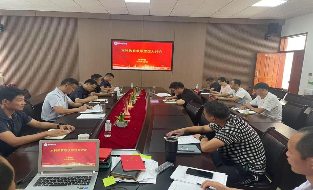 2025年7月3日上午,在体育学院会议室开展本科教育教学思想大讨论,会议由何斌院长主持,学院领导、科室负责人、专业负责人、基层教学组织、教师代表参会。会议围绕2025版本科人才培养方案修订,就学院本科教育教学情况、学校体育教学工作中的突出问题展开了交流讨论,从如何优化课程内容与激励教师投入本科教学与专业发展、如何进一步提升学生核心能力素养的培养等问题展开了深入的探讨。