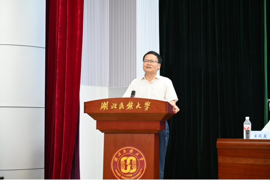 院长何斌首先致辞,他对新同学的到来表示热烈欢迎和诚挚祝贺,并以三句话与同学们共勉:第一,体育学院有底蕴、有实力、有温度,是同学们成长成才的坚实平台;第二,榜样并不遥远,奋斗就是最好的传承,勉励同学们脚踏实地、勇于拼搏;第三,要热爱民大、维护民大,希望同学们在这里安全成长、快乐成才、成就更好的自己。何院长还向全体新生提出三愿:愿大家“起好步”,做沉稳智慧的奔跑者——不盲目抢跑,而是俯身蓄力、强势出发;愿大家“拐好弯”,做勇敢坚定的奔跑者——把握人生节奏,实现弯道超越;愿大家“冲好刺”,做心系家国的奔跑者——不仅要赢在起点,更要坚持到底、赢得最终胜利。