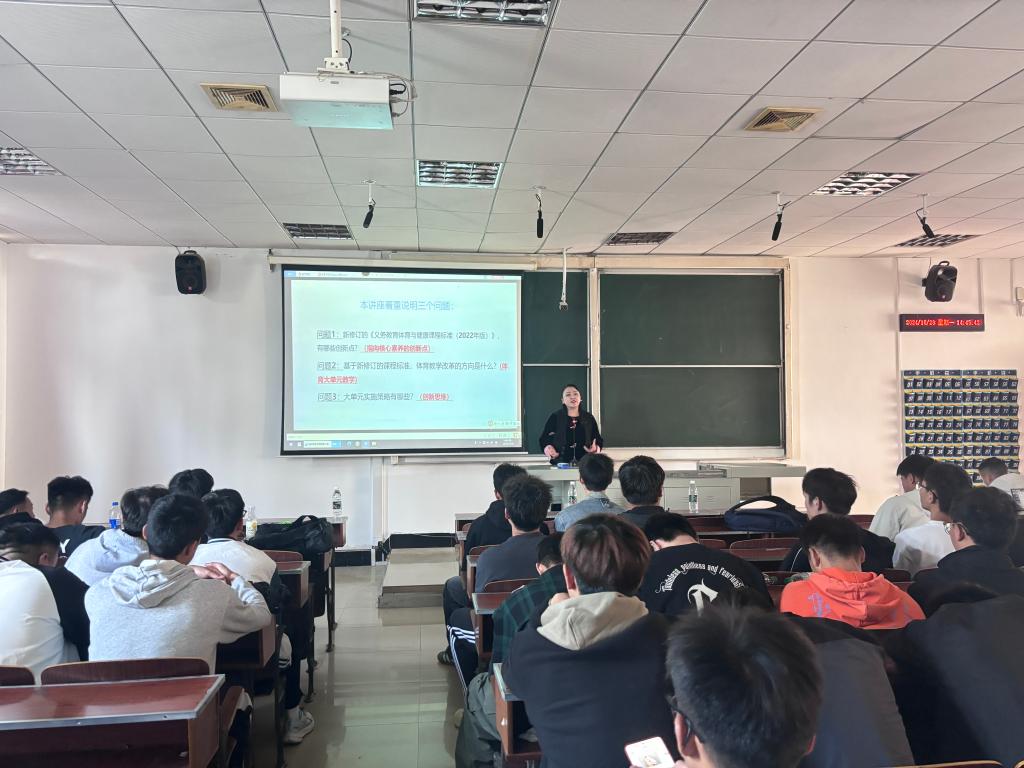 在新一轮基础教育课程改革背景下,为了进一步推动体育与健康教育的深度融合,提升教学实践的创新性,体育学院邀请湖北省特级教师、正高级教师顾静于10月28日14:30至17:30在德智楼9A211举办了一场主题为“新课程背景下体育与健康大单元教学实践与创新”专题讲座,深入探讨在新课程标准引领下体育与健康教学领域的新理念与新方法,并就如何在教学实践中实现创新与突破展开详细阐述,讲座由学院院长何斌主持。