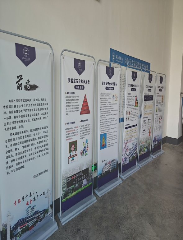 为深入贯彻落实党中央、国务院、教育部、省教育厅关于安全生产的系列重要指示精神,切实维护学校安全稳定,实验室建设与管理处从十月起陆续在工程实训中心A、B区、医学实训中心A区,医学部大楼、生物资源保护与利用湖北省重点实验室,生物示范中心A区、综合实验楼举办了实验室安全知识展览,本次展览主要介绍实验室安全知识、事故案例等。
