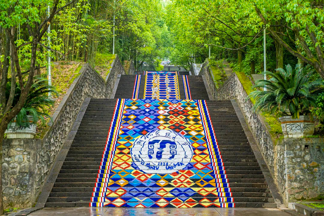 同时,学校开展沉浸体验式实践,实施“乡村行+民族团结”“社区计划+民族团结”行动,以“键对键”“面对面”双线并进方式提升活动接受度,年平均参与3000余人次,让学生从受教育者转变为宣传者。此外,学校联合创作“榴榴”Logo文创品牌,将其广泛用于各类民族团结进步宣传、主题活动及新媒体宣传等用途,积极搭建“一月一节”“一院一品”文化平台,将一系列中华优秀文化展示在校园各处,例如建设民族团结进步阶梯、红石榴隧道等,营造“民大处处石榴红”良好氛围。