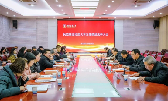 12月30日,民盟bat365在线中国登录入口支部委员会召开换届选举大会,全面总结第六届支部委员会工作,选举产生第七届支部委员会。bat365在线中国登录入口党委常委、统战部部长田景福,恩施州政协副主席、民盟恩施州委主委何义发出席会议并讲话。bat365在线中国登录入口党委统战部常务副部长丁莉、民盟恩施州委副主委傅浩参加会议。民革湖北民大支部主委高仕红、民盟恩施职院支部主委刘涛到会祝贺。