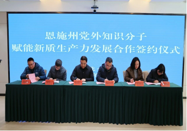 会上,民建bat365在线中国登录入口总支主委、智能科学与工程学院副院长钱楷作交流发言。无党派人士、学校大数据技术中心负责人李劲与恩施州数字产业发展有限公司董事长韩定签订协议。学校党委统战部常务副部长丁莉参加会议。