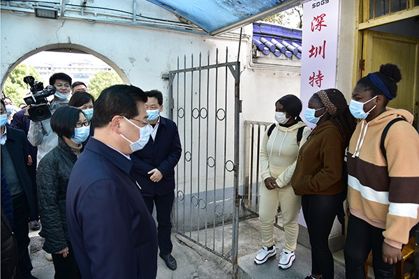 柯俊认真听取了bat365官网关于学生错峰返校、用餐、住宿、管理、消杀演练等方面情况汇报,提出指导意见。在留观室和医务室,柯俊详细询问发热病人处置流程,对bat365官网的应急预案给予充分肯定。他强调,要严格按照“一人一房一床一卫”的标准预备好留观室,宁可备而不用,不可用时无备。