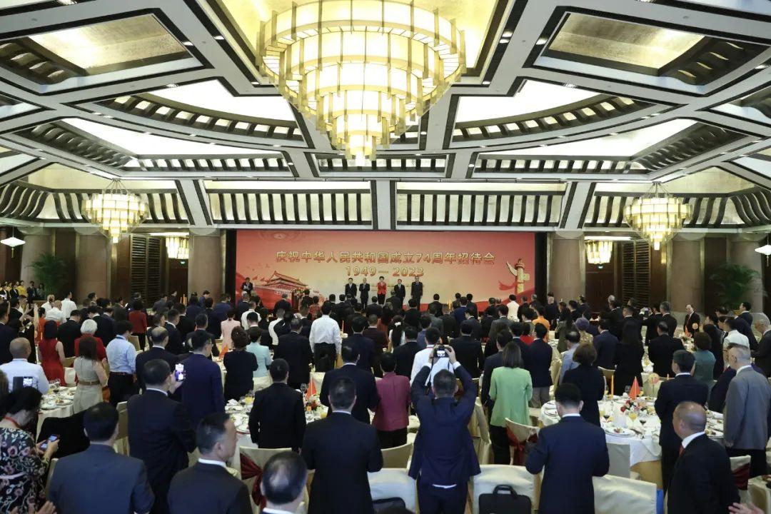 座谈会后,中国国务院侨务办公室、中华海外联谊会在钓鱼台国宾馆举行招待会,各涉侨部门邀请的海内外侨界代表共400余人欢聚一堂,庆祝新中国成立74周年。参加活动的侨界代表们纷纷表示,中国取得巨大的发展成就“侨”有荣焉,愿继续发挥自身融通中外、联系广泛的独特优势,为中华民族伟大复兴、构建人类命运共同体添砖加瓦!(转载:刘阳 编辑:陈妍 审核:丁莉)