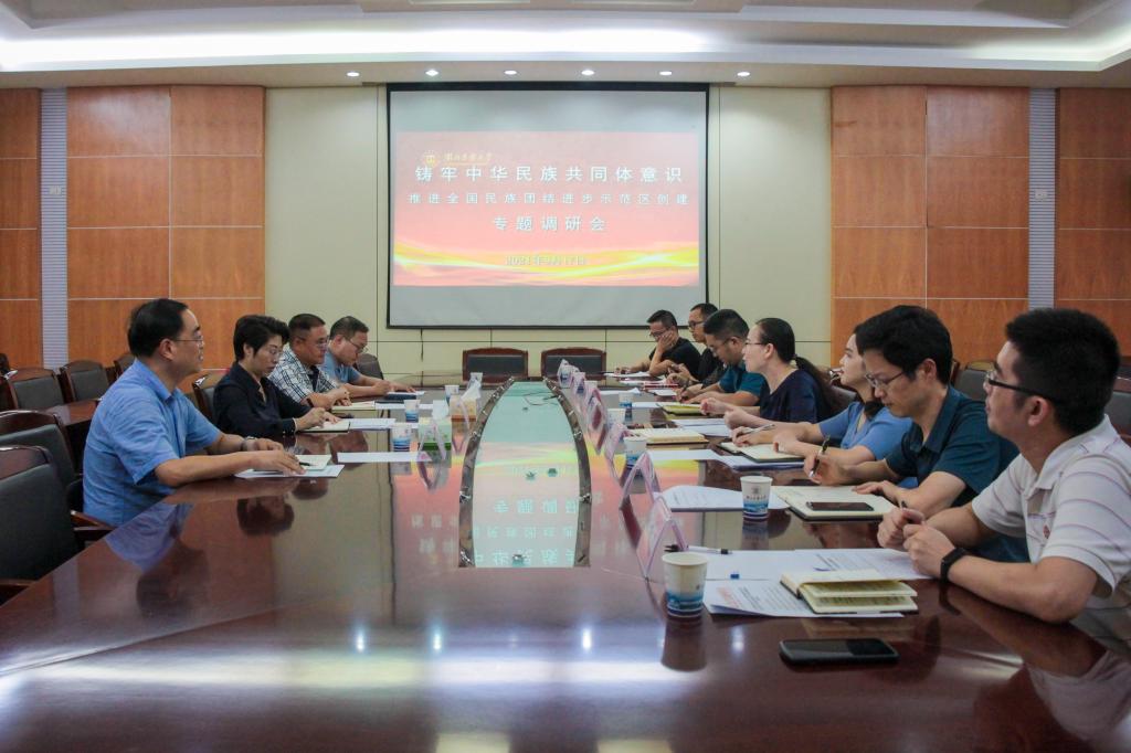 9月17日,农工党恩施州委会主委向仕莲一行4人到bat365官网开展“铸牢中华民族共同体意识,推进全国民族团结进步示范区创建”专题调研。bat365官网党委统战部常务副部长丁莉,副部长陈妍,学生工作部副部长徐杰,农工党民大委员会班子成员,以及科研处、武陵山中药材检验检测中心等部门同志参加了调研座谈会。