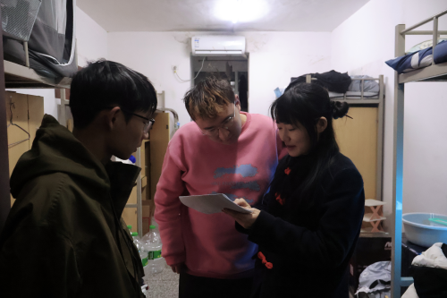 本网讯(记者 白彩凤(见习)/文 管星宇(见习)/图)12 月 25 日,我院组织全体班主任深入学生宿舍开展查寝活动,旨在全面了解学生生活状况,切实保障学生安全,维护校园和谐稳定。我院党委副书记李御娇,学生科全体老师以及我院全体班主任参与此次活动。王悦老师为学生答疑解惑学院领导与班主任们...