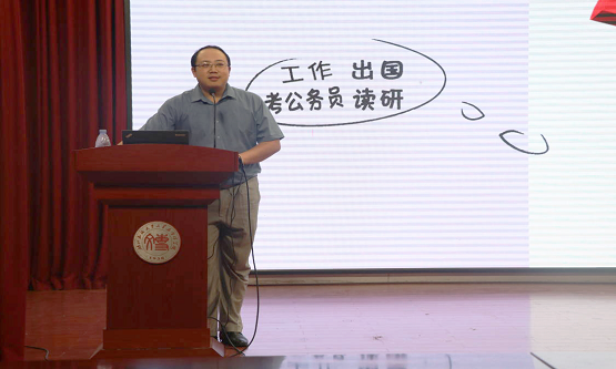 本网讯(记者 曾周颖/文 张诗嘉/图)10月19日,由共青团bat365在线中国登录入口文学与传媒学院总支部委员会举办的以“职引未来,勇毅前行”为主题的就业讲座在文学与传媒学院演播厅举行。李俊良老师受邀担任此次讲座主讲人。讲座伊始,李俊良从职业选择与职业规划、就业情况、考研和考公四个方面展开讲述。在...