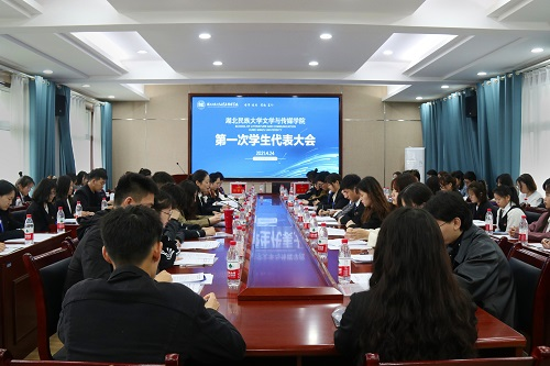 本网讯(记者 成欢 田忻)4月24日,我院在智慧教室(一)举办文学与传媒学院第一次学生代表大会。校团委副书记谢晖,我院党委书记杨光宗,党委副书记陈妍,团总支书记谭芸,学生科老师肖瑜及学生代表出席本次会议。