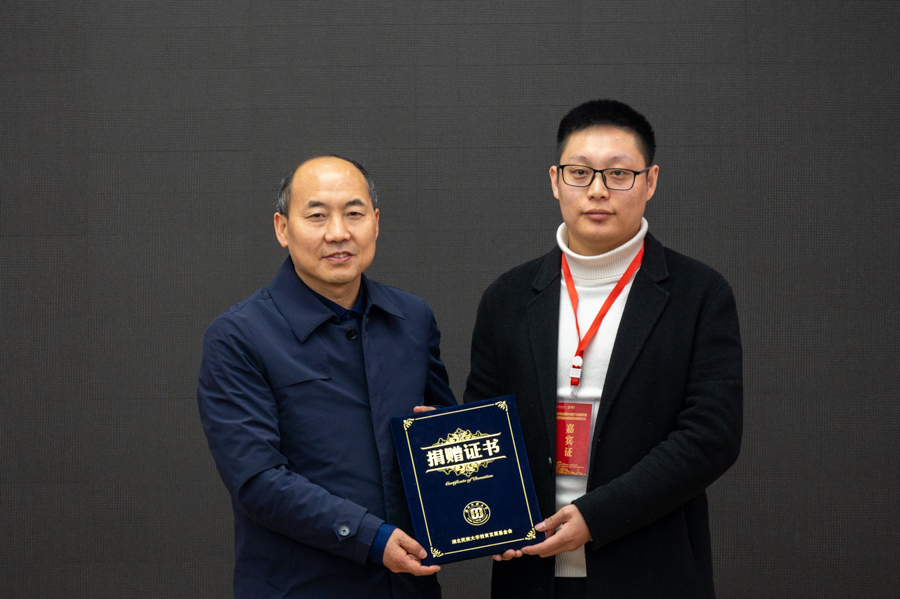 凤凰数媒(北京)教育科技有限公司、湖北硒纽克生物科技有限公司与文学与传媒学院举行校企合作签约仪式。湖北硒纽克生物科技有限公司与bat365在线中国登录入口举行捐赠仪式,湖北硒纽克生物科技有限公司法人代表刘可现向学校捐赠10万元,并设立硒健康传播基金,共同助力学校新文科新医科人才培养。