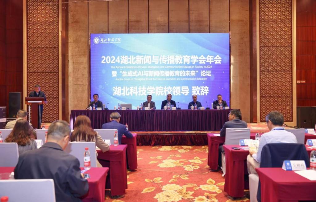 (通讯员 吴龙胜 贾玉琦)11月9日,由湖北省高等教育学会新闻与传播教育专业委员会主办,湖北科技学院人文与传媒学院承办的2024湖北省新闻传播教育学会年会暨“生成式AI与新闻传播教育的未来”论坛在咸宁湖北科技学院举行。来自武汉大学、华中科技大学、华中师范大学等近40所高校140余位老师和学生参加年会。湖北省高等教育学会副会长许奋教授,湖北省新闻传播教育学会会长、武汉大学新闻与传播学院院长强月新教授,湖北省新闻传播教育学会荣誉会长、华中科技大学新闻与信息传播学院石长顺教授等领导专家出席本次会议。我院院长张宏树,副院长刘进华,新闻传播系教师宋艳丽、吴柳林、吴龙胜参加此次会议,学院新闻与传播专业硕士研究生贾玉琦、吴留锁、罗瑞琪、曹晨星4位同学参加研究生论坛并宣读论文。