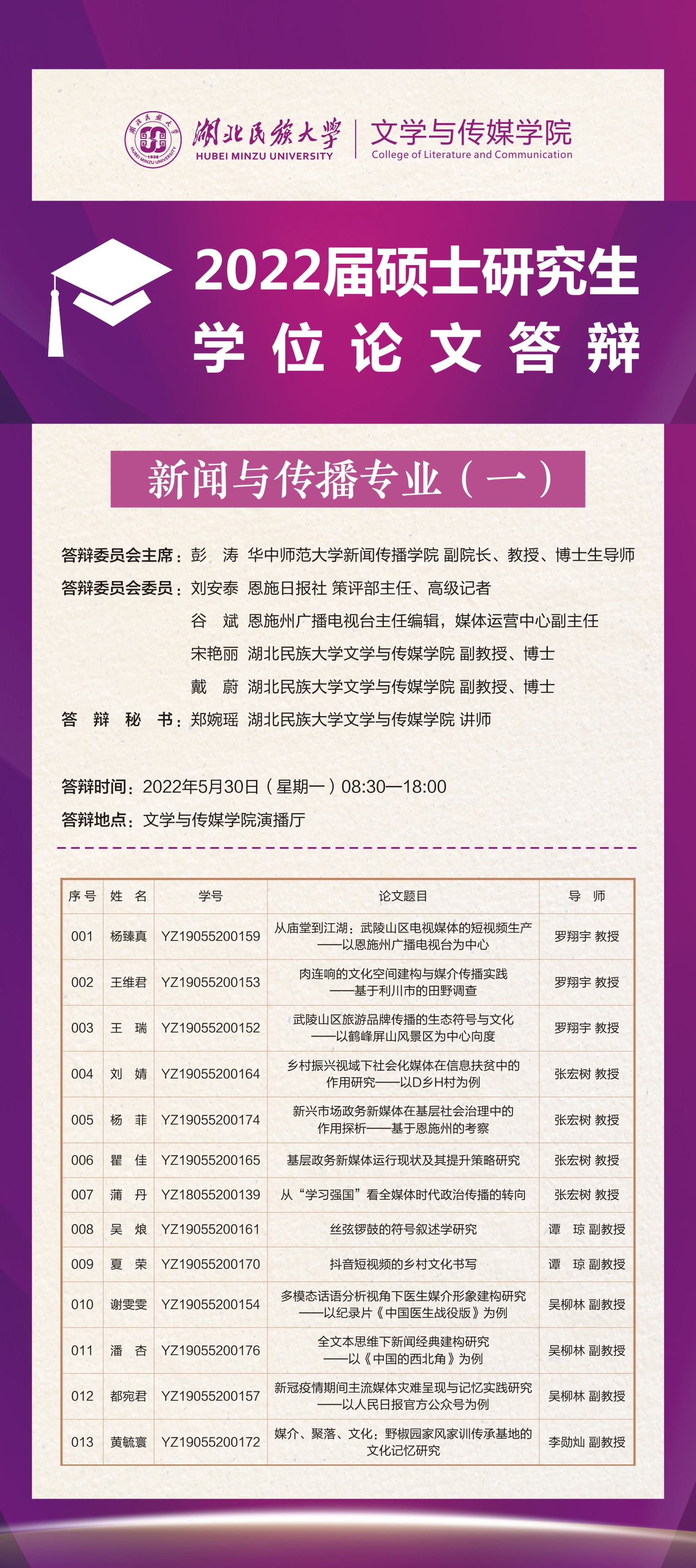 2022届硕士研究生学位论文答辩(新闻与传播专业)