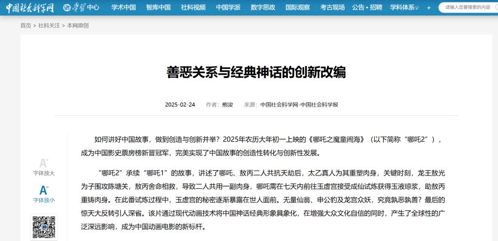 2月24日,我院熊浚博士的文章:《善恶关系与经典神话的创新改编》在中国社会科学网发表。