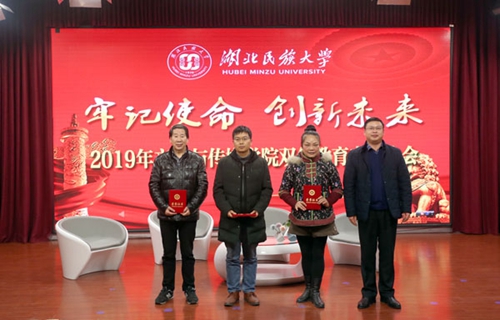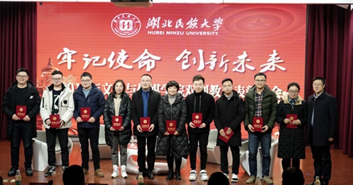 12月15日晚,文学与传媒学院在演播厅隆重举行“牢记使命 创新未来”2019年度双创教育表彰大会。学校党委委员、宣传部常务副部长唐敦双,教务处处长谭世明,科技学院院长廖云,教务处副处长谭华和创新创业教育学院副院长易金桥出席了表彰大会,并为相关学科赛事的获奖师生颁奖。