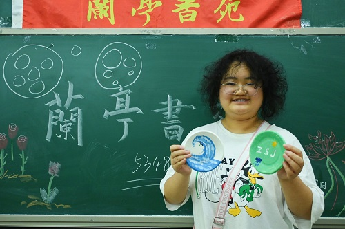 随后,与会人员在工作人员引导下进行创作,现场配备画笔、颜料、纸盘等多种材料和涂鸦工具。学生或选择在纸盘上题诗作词、或选择画下水墨画,活动现场参与度高,学生聚精会神进行创作。