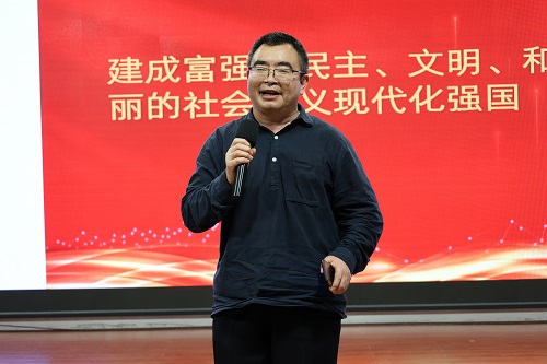 本网讯(记者 吴雯茜 杨茗莉 赵含韵/文 刘晓微/图)5月20日,文学与传媒学院团总支宣传部在文传演播厅举办以“理论学‘习’我来讲——学习二十大,永远跟党走,奋进新征程”为主题的百生讲坛演讲比赛决赛。我院党政办公室主任郑泽红,团总支书记穆小雪,中文系主任范生彪,副教授宋俊宏,博士吴飞受邀出席并担任本次大赛评委。