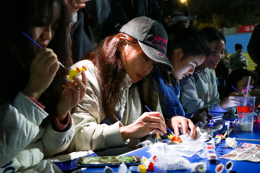 观灯会环节,非遗“花灯”远观壮观,近赏精致,吸引广大师生的目光。学生经过剪刻、折叠、黏合等工艺精心制作的花灯为校园生活与文化交流创造机会,展现出丰富的民族文化和艺术风格。