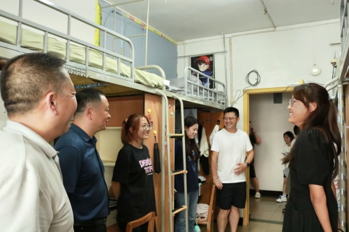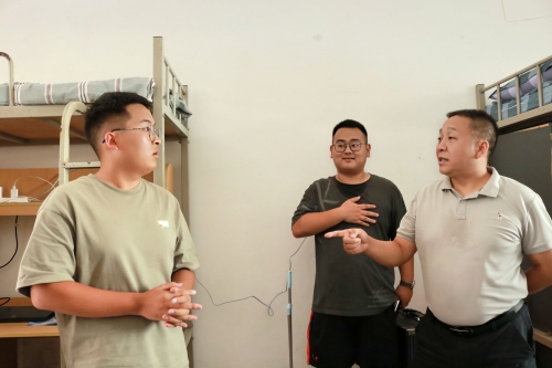 在温馨的氛围中,学院领导、班主任同新生们进行了亲切地交流。询问了新生的住宿感受、生活需求以及未来规划等,并耐心解答了广大新生提出的问题。同时,他们还仔细检查了寝室的卫生状况、空调设施等方面,确保新生们能够在一个安全、舒适的环境中生活。
