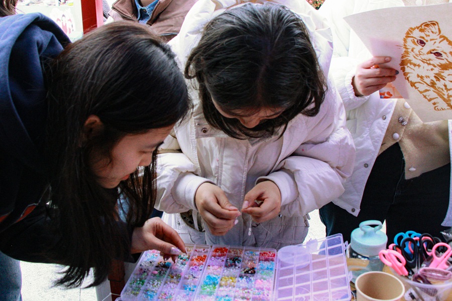 学生参与串珠活动