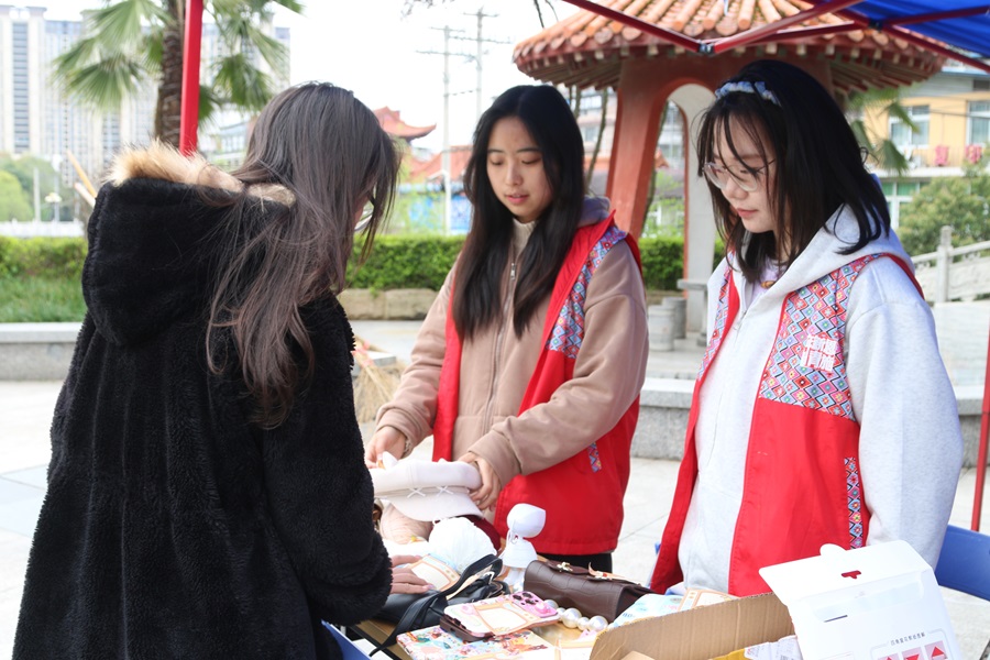 本网讯(记者 李蓉华 韩璐/文 曹登霄 曾郑一/图)3月21日,共青团bat365在线中国登录入口文学与传媒学院委员会社会实践与志愿者工作部在大学生广场开展以“旧物新生,手作传情”为主题的公益集市爱心义卖活动。活动面向全校师生,融合闲置流转、创意义卖与互动体验,将环保理念与公益爱心深度结合,现场氛围热烈,吸引众多师生踊跃参与。