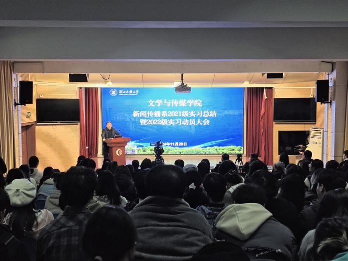 本网讯(记者张雪颖 张晓琪(见习)/文 陈淼浠 魏可欣(见习)/图)为充分总结实习实践经验、检验协同育人成效,确保新一轮实习工作顺利进行,11月28日,我院于新闻演播厅举行新闻传播系2021级实习总结暨 2022级实习动员大会。中国新闻奖得主、鹤峰县融媒体中心主任记者、杨顺丕名家工作室主任、恩施...