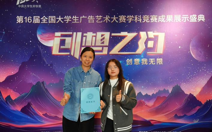 本网讯(通讯员 覃宁虹)11月24日,第16届全国大学生广告艺术大赛(以下简称“大广赛”)学科竞赛成果展示盛典暨国家级奖项颁奖典礼在北京东亿演艺大楼演播厅隆重举行。我院陶薇老师和获奖学生代表覃宁虹参加颁奖典礼并接受颁奖。我院师生代表参加第16届大广赛颁奖典礼“大广赛”是教育部正式立项的...