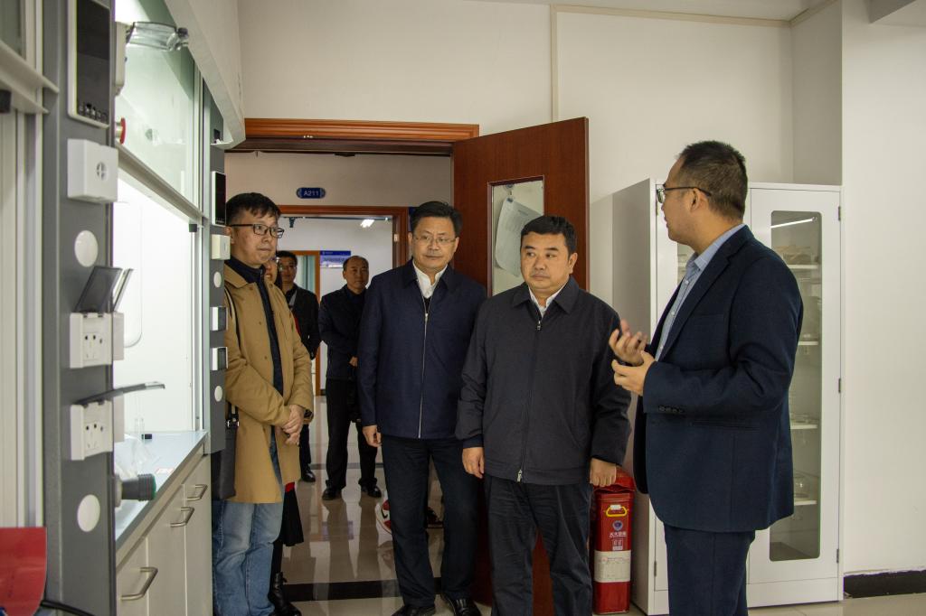 本网讯 (通讯员 李柯霖) 10月21日,湖北大学党委副书记、校长刘建平到bat365在线中国登录入口武陵山中药材检验检测中心考察、交流,学校党委副书记、校长顿祖义,党委常委、副校长李军等陪同考察。