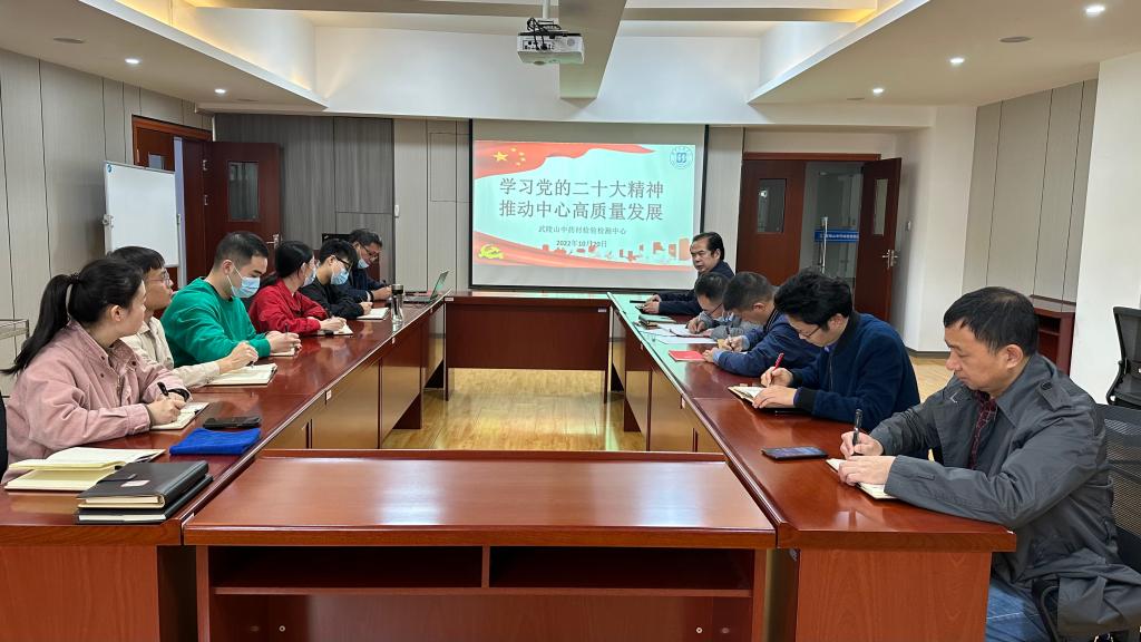 本网讯 (通讯员 刘昕) 2022年10月20日,武陵山中药材检验检测中心(以下简称中心)召开职工大会,专题学习党的二十大会议精神。会议由中心主任颜益志主持。