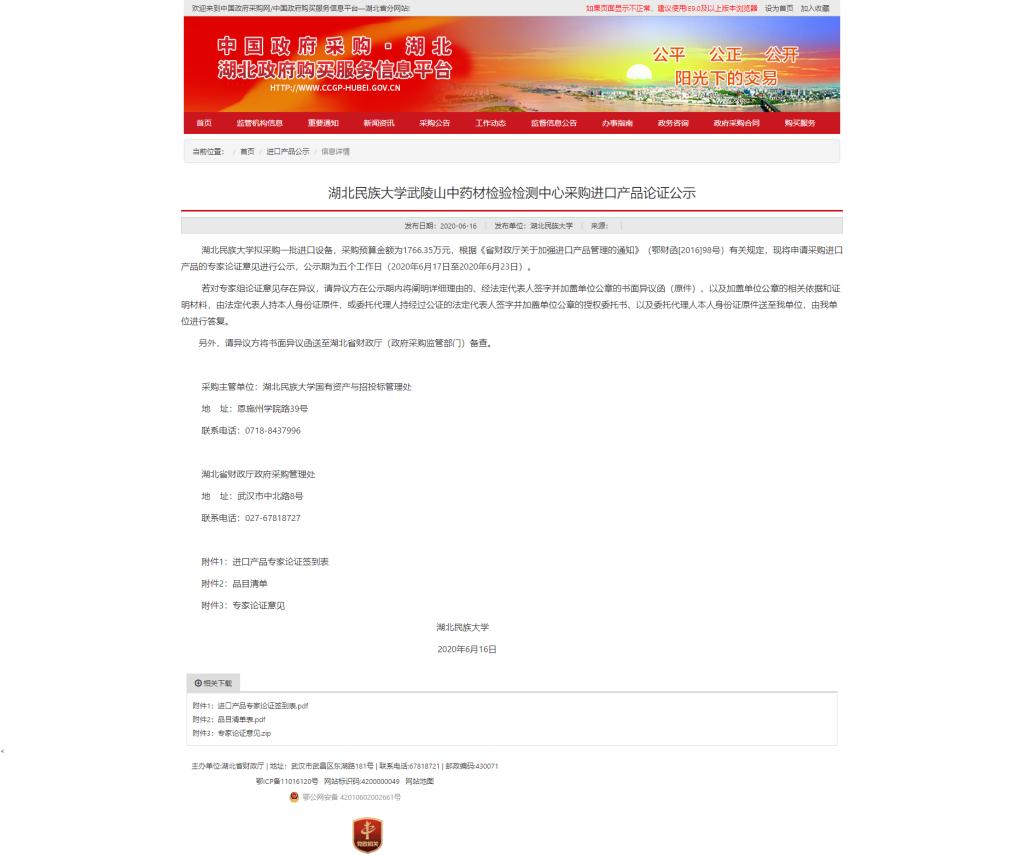 bat365在线中国登录入口武陵山中药材检验检测中心采购进口产品论证公示
