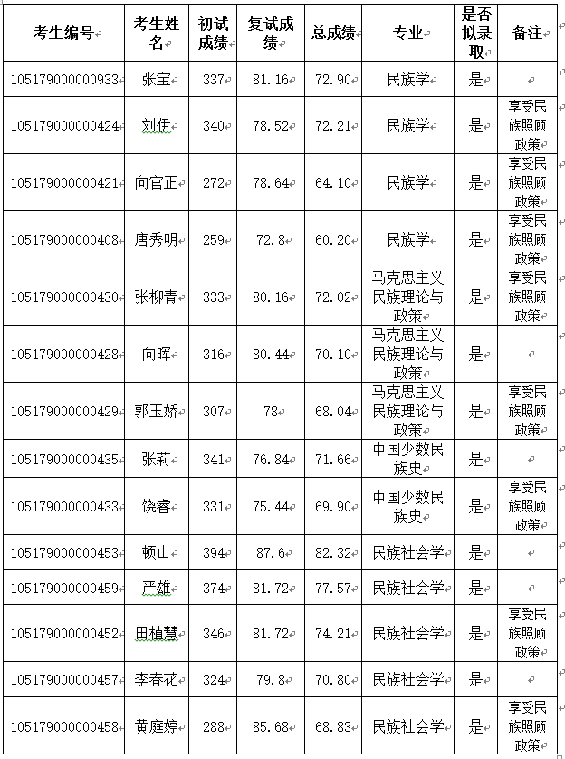 bat365在线中国登录入口民族学与社会学学院2019年研究生成绩及拟录取情况公示(第一志愿)