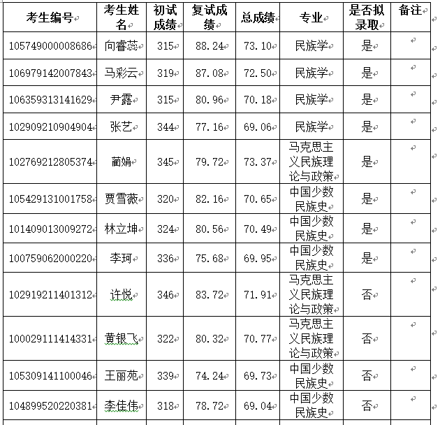 bat365在线中国登录入口民族学与社会学学院2019年研究生成绩及拟录取情况公示(调剂生)