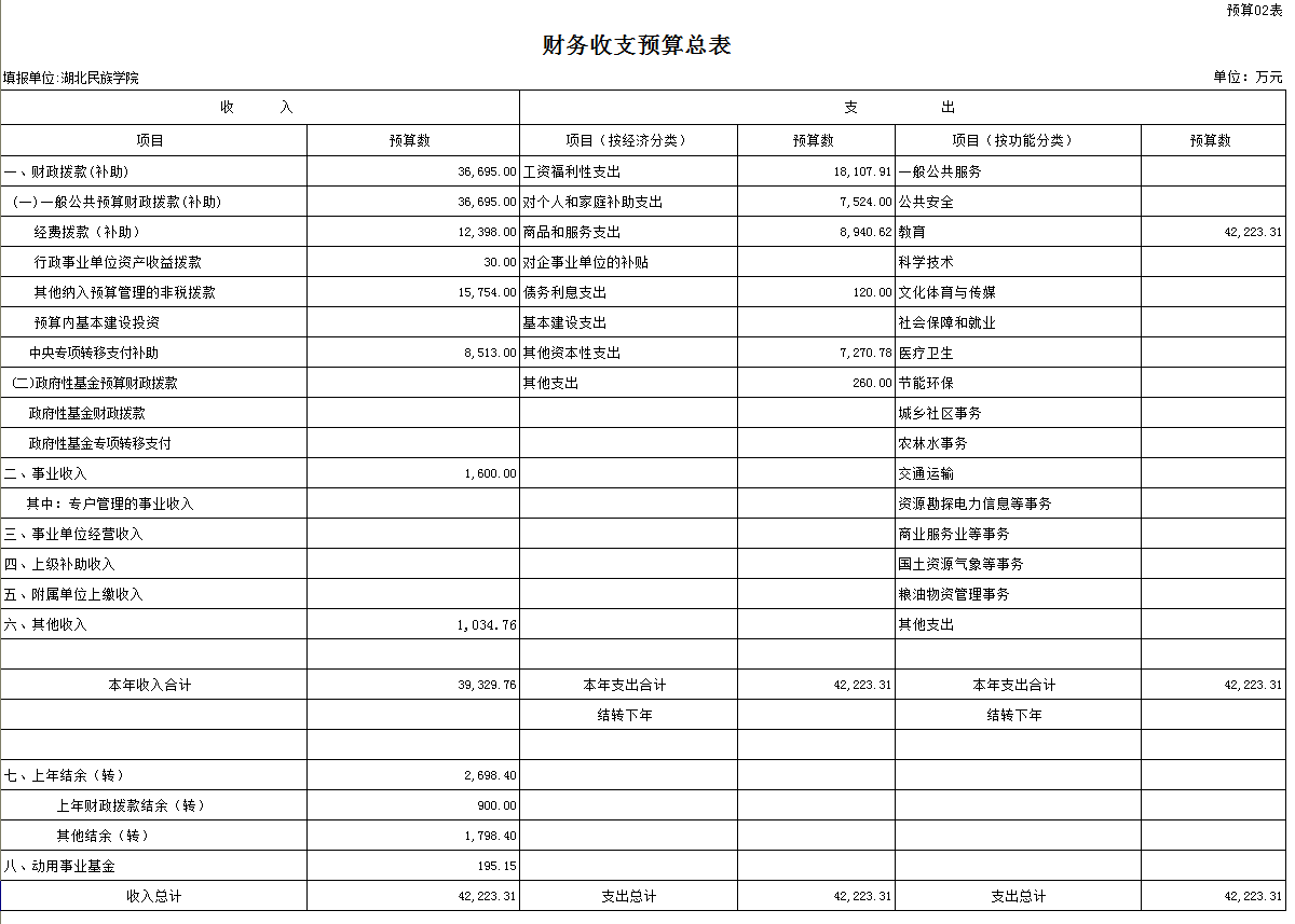 您现在的位置 网站首页> 财务、资产及> 收支预算总表> 收支预算总表> 正文>