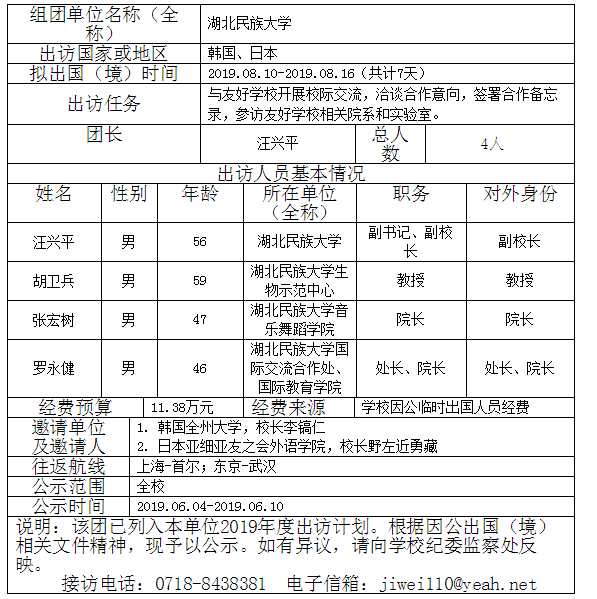 bat365在线中国登录入口团组赴韩国、日本开展校际交流信息公开公示表