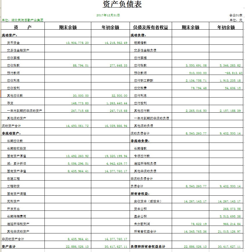 校办企业资产、负债、国有资产保值增值等信息(2017年度)