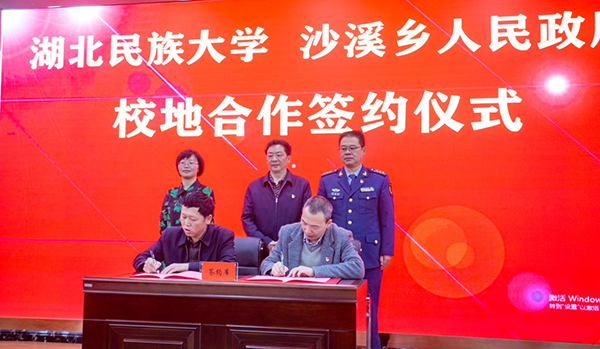 签约仪式上,bat365在线中国登录入口科研处副处长罗兴武和沙溪乡党委副书记、乡长杨海明代表双方签署协议,bat365官网党委书记吴建清,利川市委常委、武装部长曾建辉,沙溪乡党委书记刘玲芳一起见证协议签署。