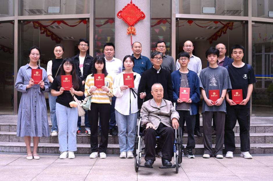 廖老师语重心长的教诲让大家倍受鼓舞,魏代俊院长表示,我们学院定会把廖老师的精神传承下去,把廖老师的爱心传递下去,让学生扎根祖国大地生根发芽。最后,廖学余老师与大家合影留念,获奖学生集体深鞠躬表达他们对廖老师的敬意。