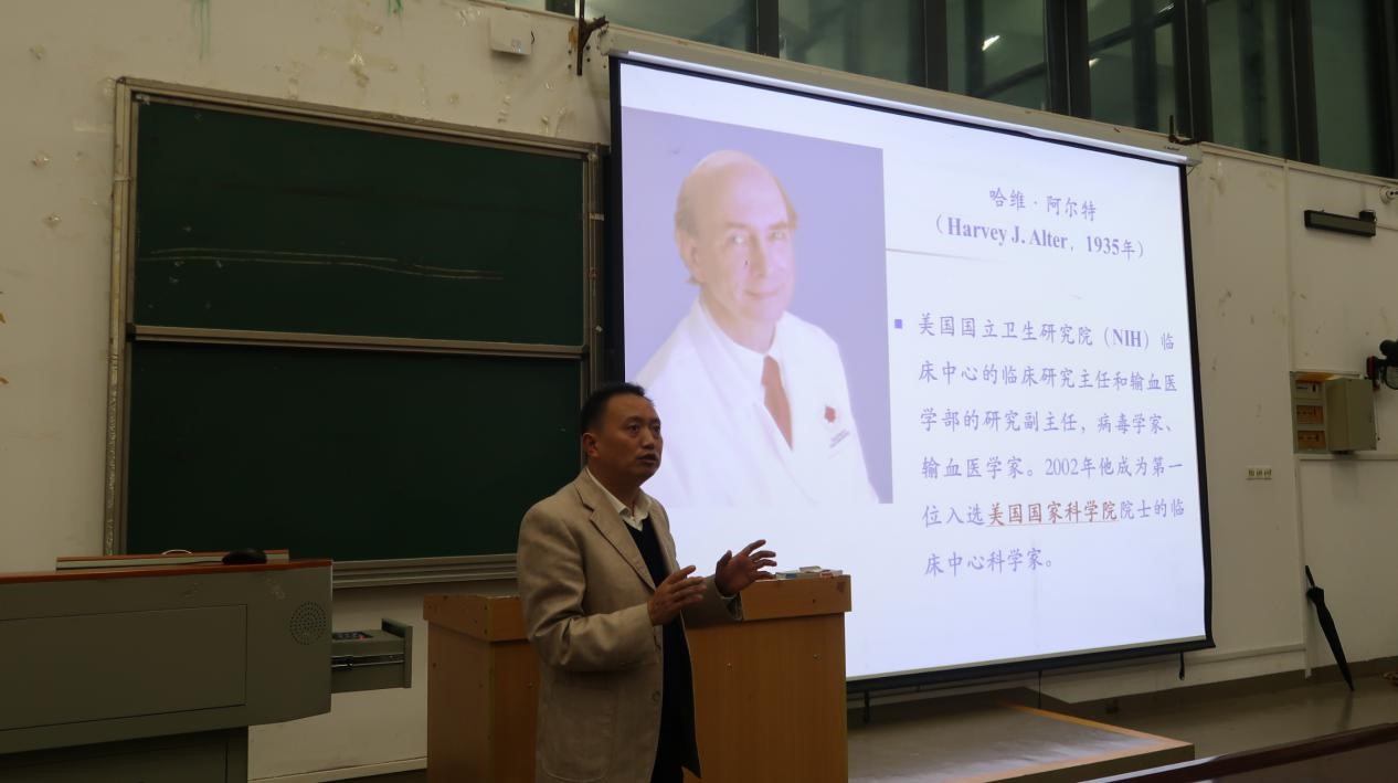 本网讯(通讯员 方珊、余铮术)10月15日晚19:00,由研究生处主办、医学部承办的学术讲座《从丙肝病毒到新冠病毒——对病毒研究的再认识》——2020年诺贝尔生理学或医学奖解读会在5B508教室顺利举行。此次讲座由bat365官网学科建设及学位管理办公室副主任罗洪斌教授主讲,医学部、化环学院、数统学院全体研究生和部分本科生到场聆听。罗教授从2020年诺贝尔生理学或医学奖获奖内容解读开始,对人类致病病毒研究及当前新冠肺炎疫情防控进行再学习再认识,并展开开放式讨论。