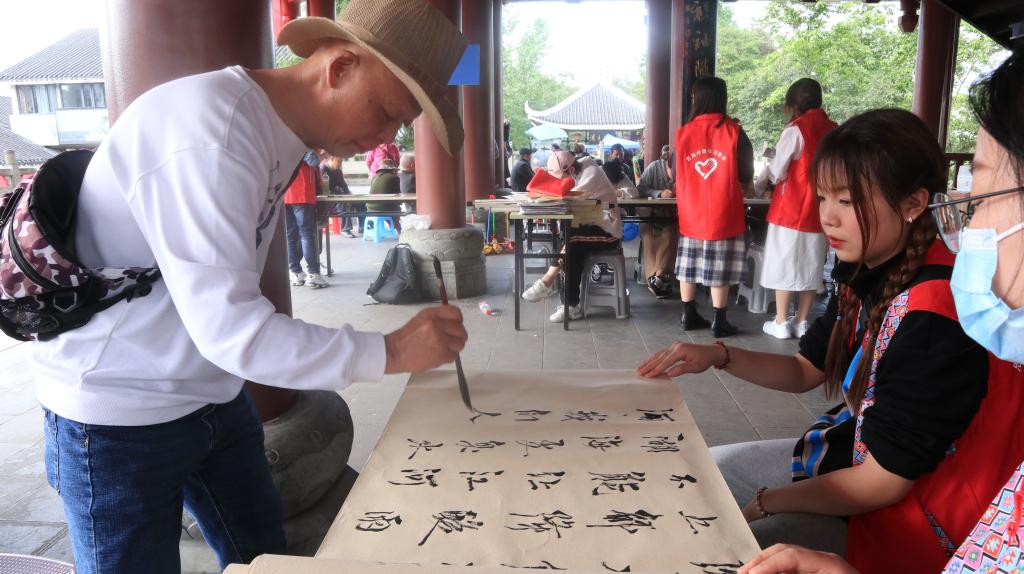本网讯(记者 付傲 通讯员 许旖蕾/文 李东 李自鹏 何冰惠/摄)为庆祝中国共产党成立100周年,提高同学们绘画创作的热情,4月22日,医学部墨缘书画社于机场路社区开展主题为“周年同庆山河美 泼墨挥写万代春”的特色活动。30名志愿者参与其中。