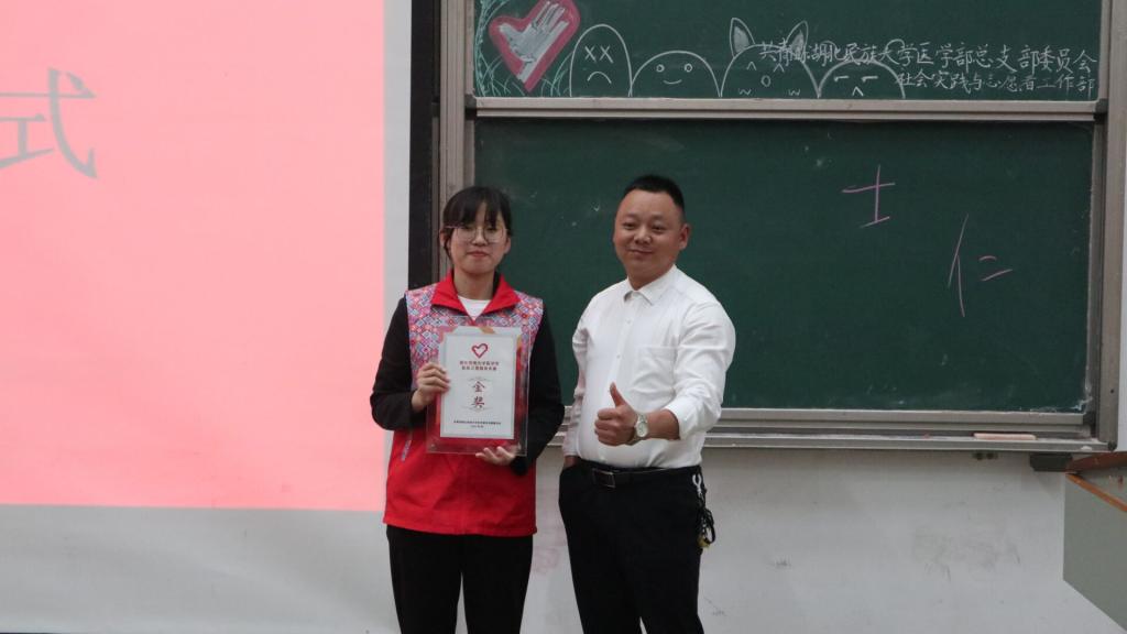 (本网讯 通讯员 袁子涵 许旖蕾/文 摄影 李湘 李东 曾凡轩/摄)为进一步弘扬志愿服务精神,宣传志愿服务理念,引导大学生在服务社会的实践中受教育、长才干、做贡献,5月28日,医学部在修远楼5B404教室联合开展第一届志愿服务项目大赛。此次活动由医学部团总支社会实践与志愿者工作部及医学部青年志愿者协会主办。恩施义工协会发起人向波,副会长汪娜,恩施州残友之声志愿帮扶协会会长严明君,医学部党委书记黄晓波,音乐舞蹈学院团总支书记单家迪,医学部学生工作办公室老师袁琳、陈建萍应邀出席并担任评委。现场观众200余人。