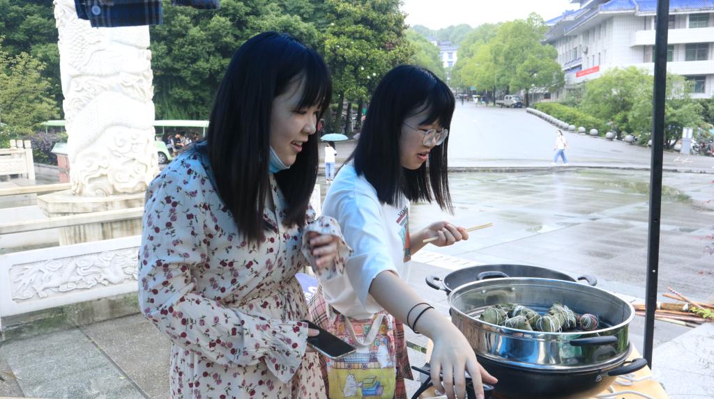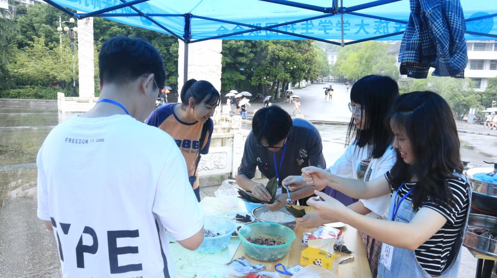 本次活动通过游戏的方式带领同学们学习中草药知识,参与者可凭借在游戏环节累计的积分领取香囊,或者根据中草药的功效和自己的个人喜好,亲手制作香囊。此外,主办方还准备了蒸笼来帮助同学们蒸粽子