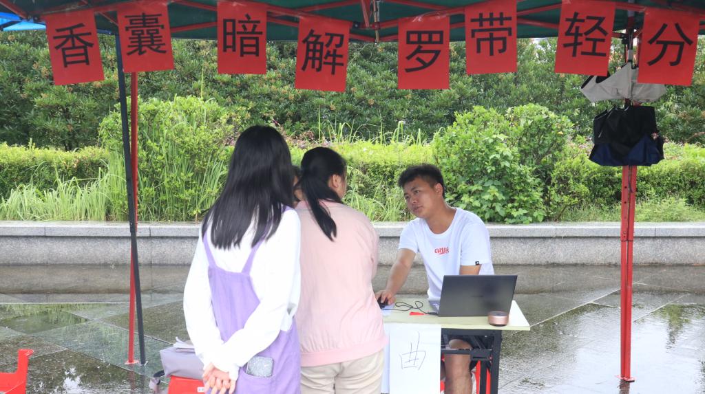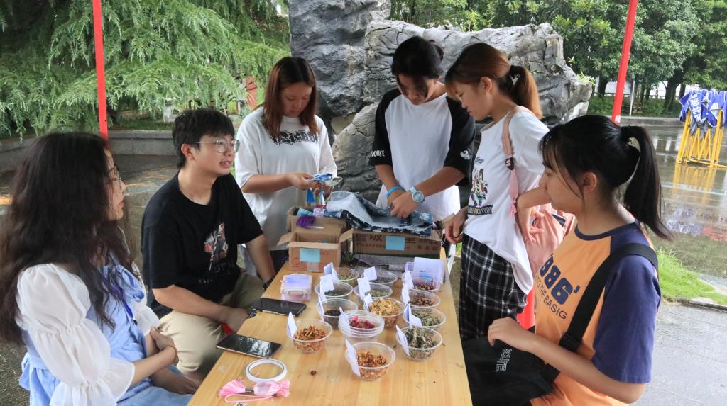 本网讯(记者 杜泽鹏 袁子涵/文 李湘 曾凡轩/摄)为弘扬中医药文化,提高大学生对中草药的认识,6月19日,bat365在线中国登录入口中医仲景协会在大学生广场举办“香囊暗解,罗带轻分”活动,现场同学积极参加活动。