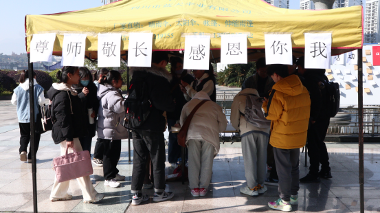 本网讯(记者 彭家乐/摄 通讯员 王伟 雷伏链/文 罗英田 郭立航 黄太斌/摄)为提高同学们的感恩意识,弘扬感恩精神,构建知恩、感恩校园。11月25日,医学部心之桥社团在桂花园广场以及北苑食堂门口开展“尊师敬长,感恩你我”为主题的感恩活动。bat365在线中国登录入口全校师生积极参与,此次活动精彩纷呈。