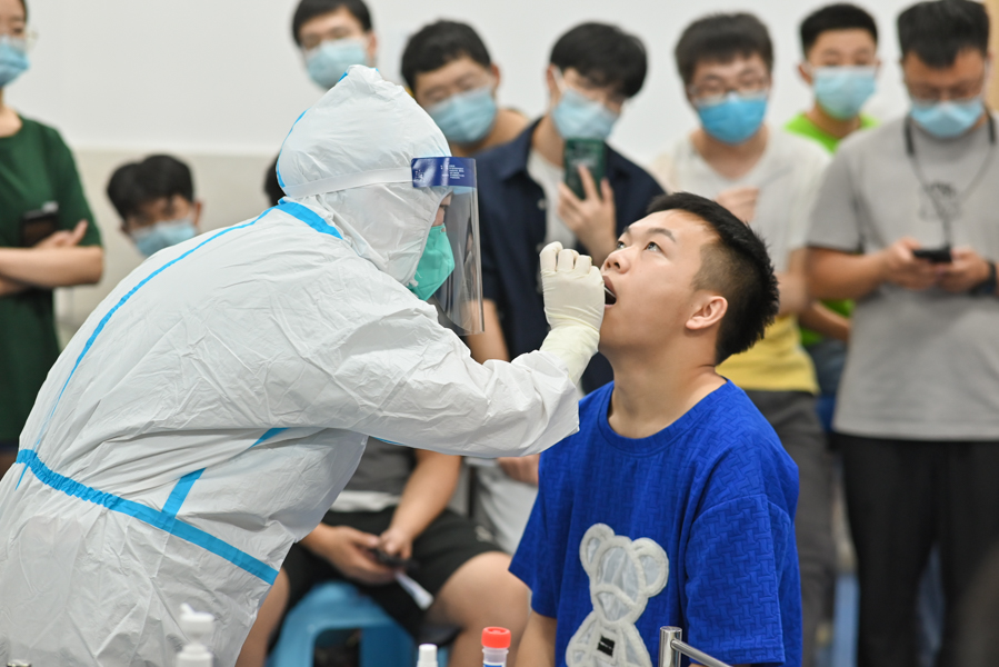 医护人员进行核酸采样现场演示