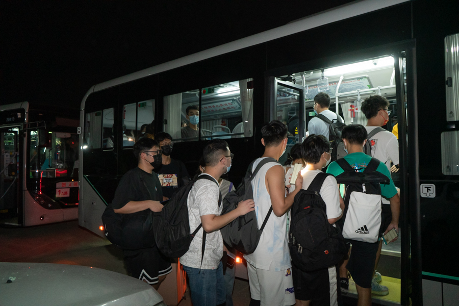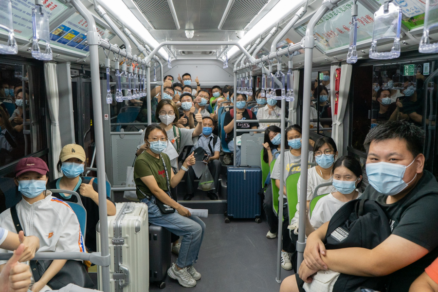 23:00——同学们整装完毕,从容自信地登上大巴,他们毫不畏惧即将到来的战斗。“需要多久,我们就奋战多久!”“疫情不退,我们不退,我们坚守到底!”老师一边拿着名单确认人数,一边叮嘱学生要注意防护安全。大巴上,同学们才抽出时间与家人视频通话,互道平安。