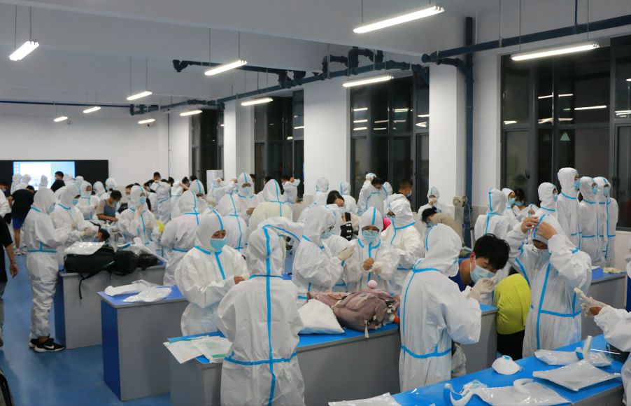 培训分为“穿防护服流程”“核酸采集”“脱防护服流程”三部分。来自恩施州中心医院的临床医生通过现场演示、实践操作等形式为同学们进行了细致培训。同学们对防护服穿脱规范、采样规范、洗手、防护规范及医疗垃圾打包处置等环节有了深入的了解。